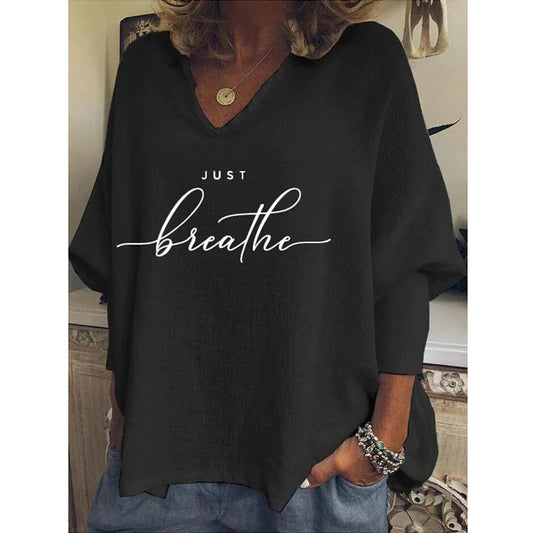2022 Cotton And Linen Solid Color Lapel Slit Dovetail Three-quarter Sleeve Women’s Shirt