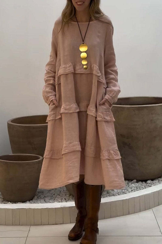 Dámské ležérní šaty z bavlny a lnu s kulatým výstřihem a jednobarevné