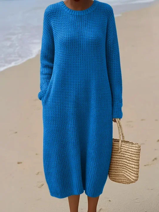 Dámské svetrové šaty s kulatým výstřihem a dlouhým rukávem