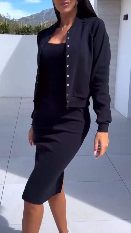 Dámské upnuté šaty + bunda Cardigan pro volný čas