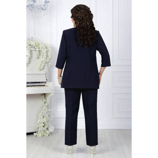 Dámský dvoudílný oblek s kulatým výstřihem, krátkými rukávy a střihem