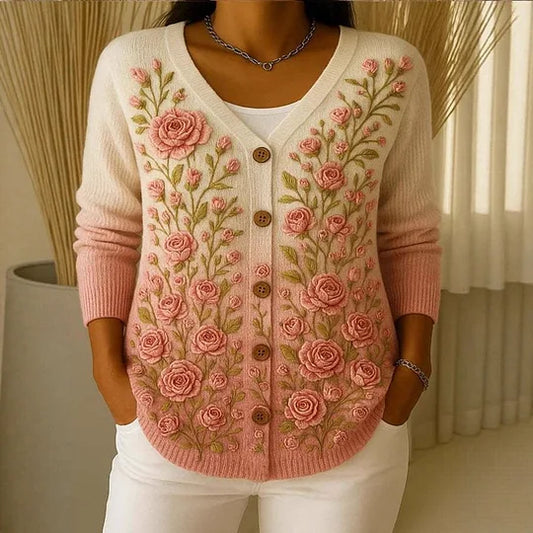 Dámský bavlněný kardigan s výstřihem do V a květinovým potiskem