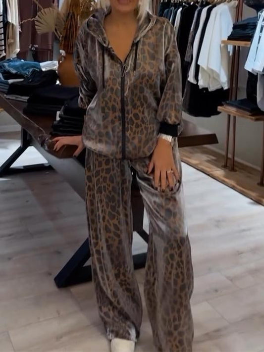 Dámský dvoudílný oblek s kapucí s leopardím vzorem