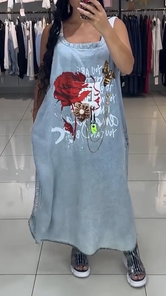 Dámské volné ležérní šaty s výstřihem do U a potiskem Wash Water