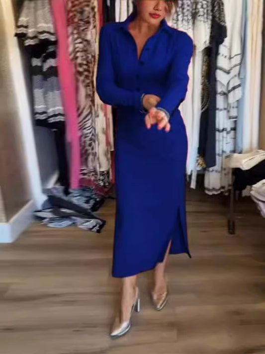 Dlouhé šaty s košilovým límečkem z polyesteru 2024