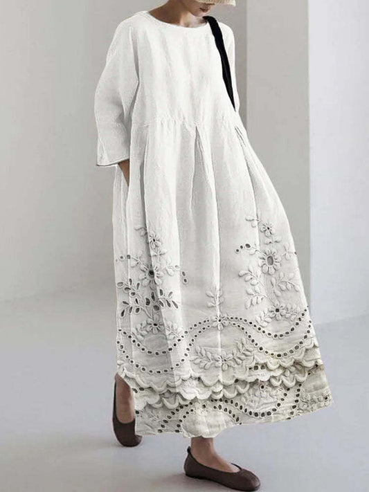 Elegantní dlouhá sukně ze směsi lnu s vyšívanou květinovou krajkou