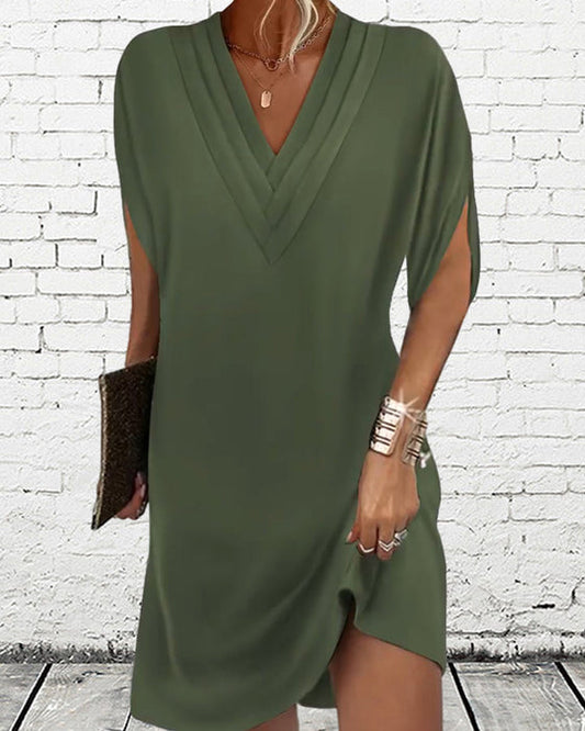 Elegantní ležérní vintage volné šaty s výstřihem do V