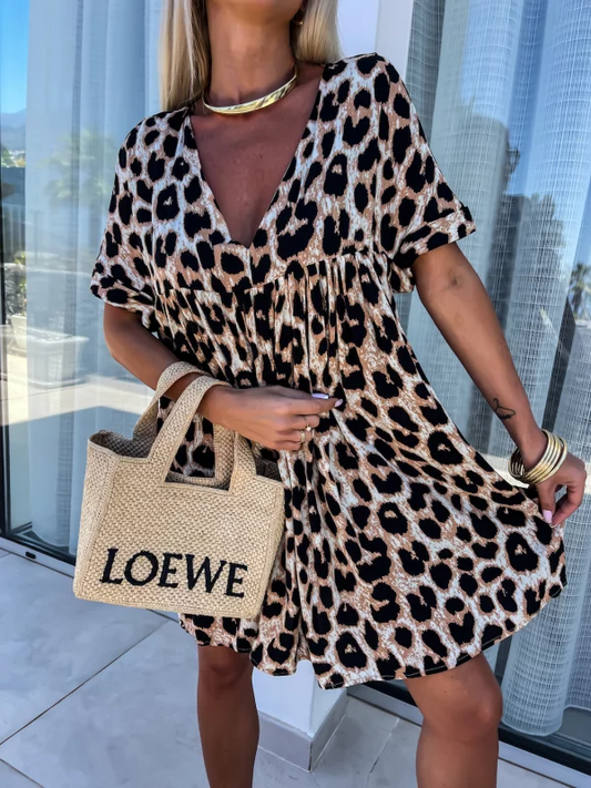 Šaty s vlnitým potiskem a výstřihem do V