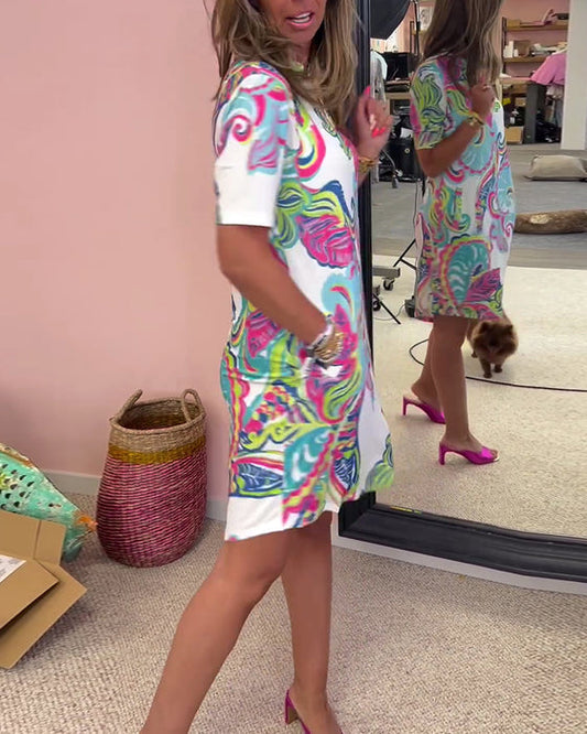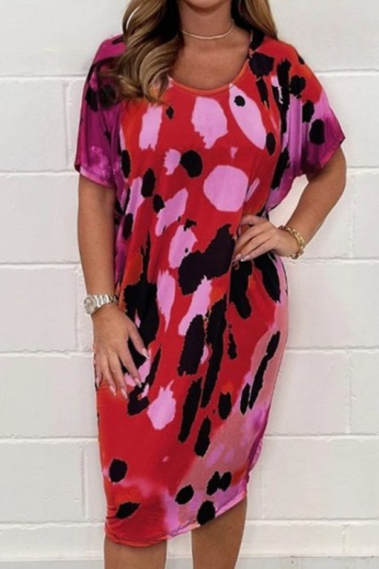 SEXY SLIPOVÉ ŠATY S VÉČKOVÝM VÝSTŘIHEM A VOLNÝM POTISKEM