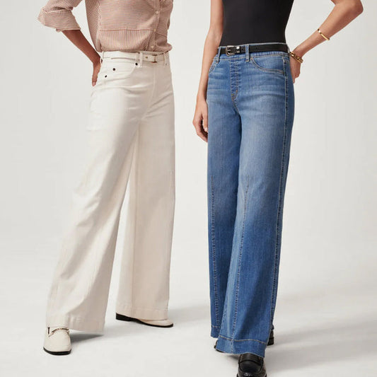 Široké kalhoty s rovným potiskem a vysokým pasem