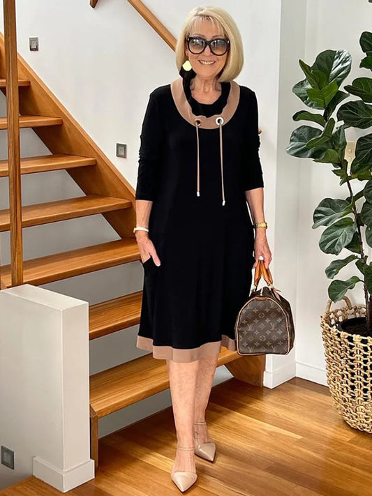 Stylové a elegantní dlouhé šaty s kulatým výstřihem