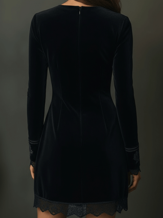 Vintage černé sametové šaty s výšivkou a krajkovými detaily