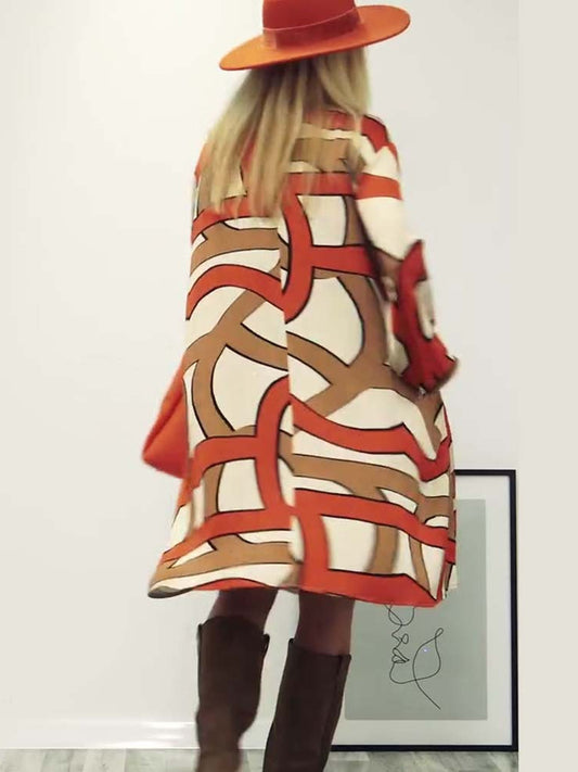Volné šaty s potištěným kulatým výstřihem a dlouhými rukávy