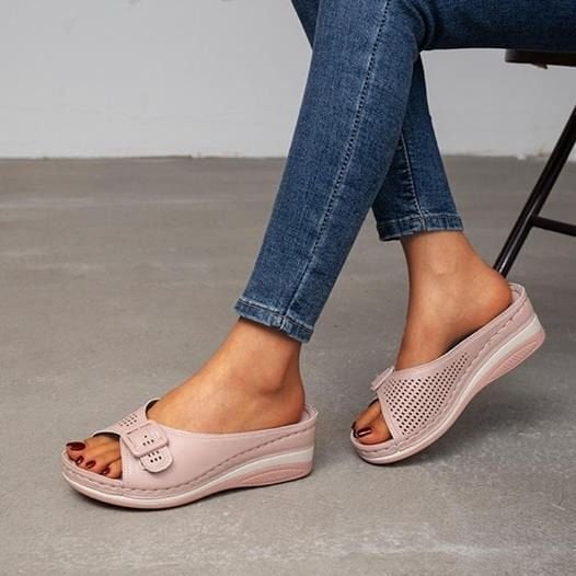 🔥Výprodej na poslední den 50% SLEVA - Dámské otevřené ortopedické kožené pantofle
