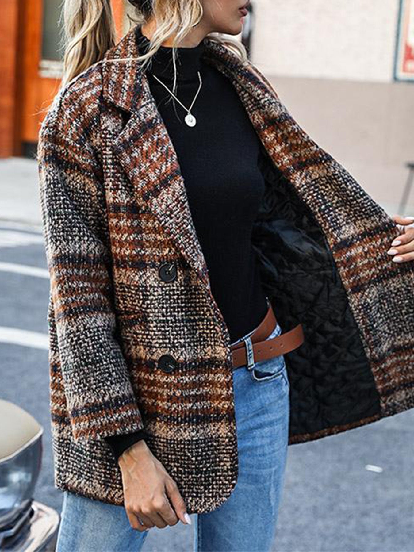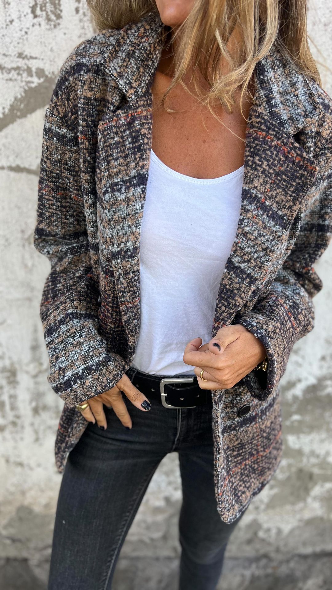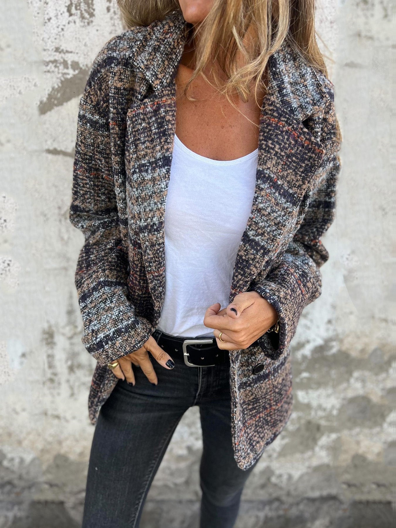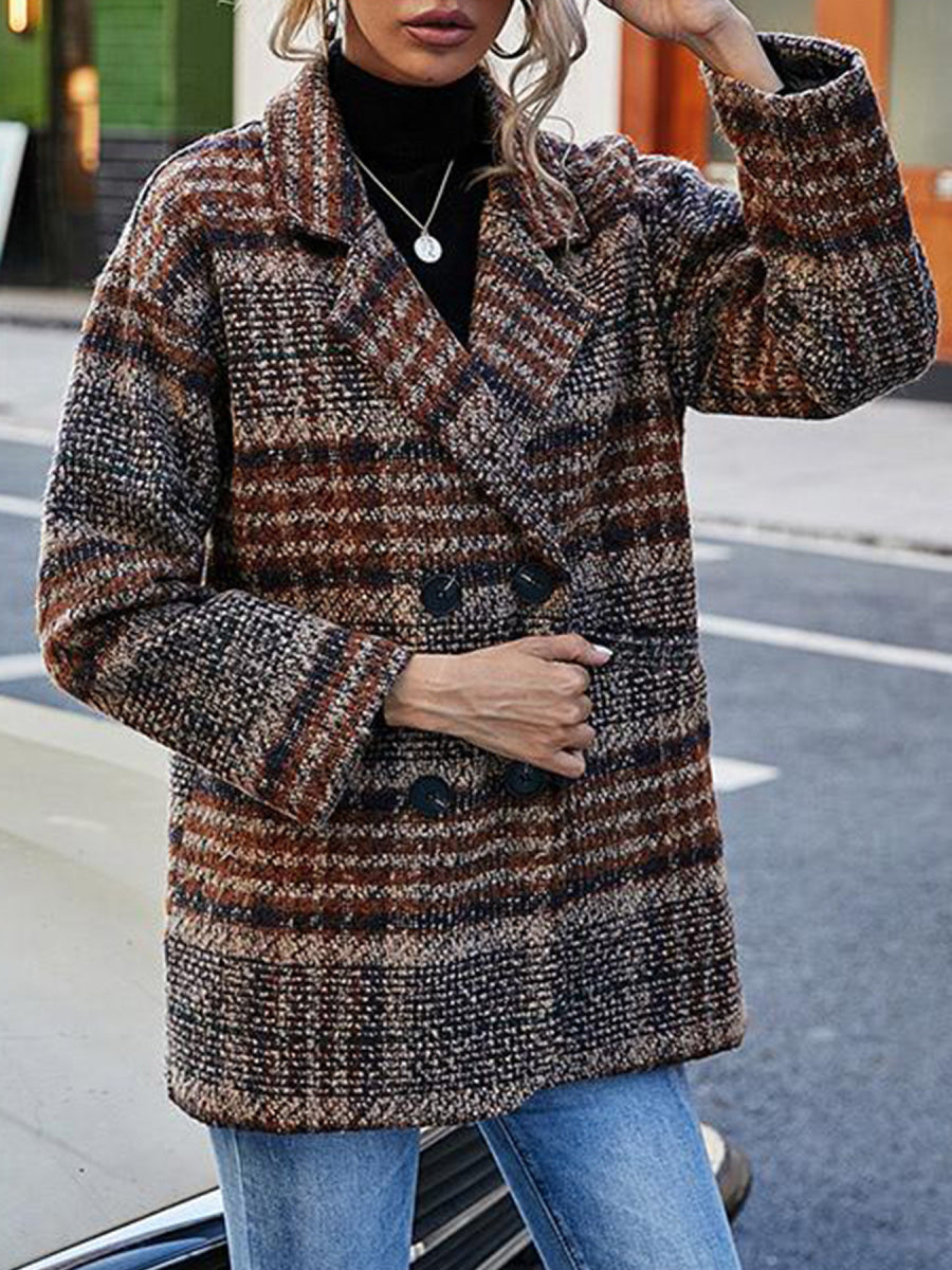 🔥 Dámská kostkovaná podzimní a zimní bunda s klopou a dlouhým rukávem z čisté bavlny