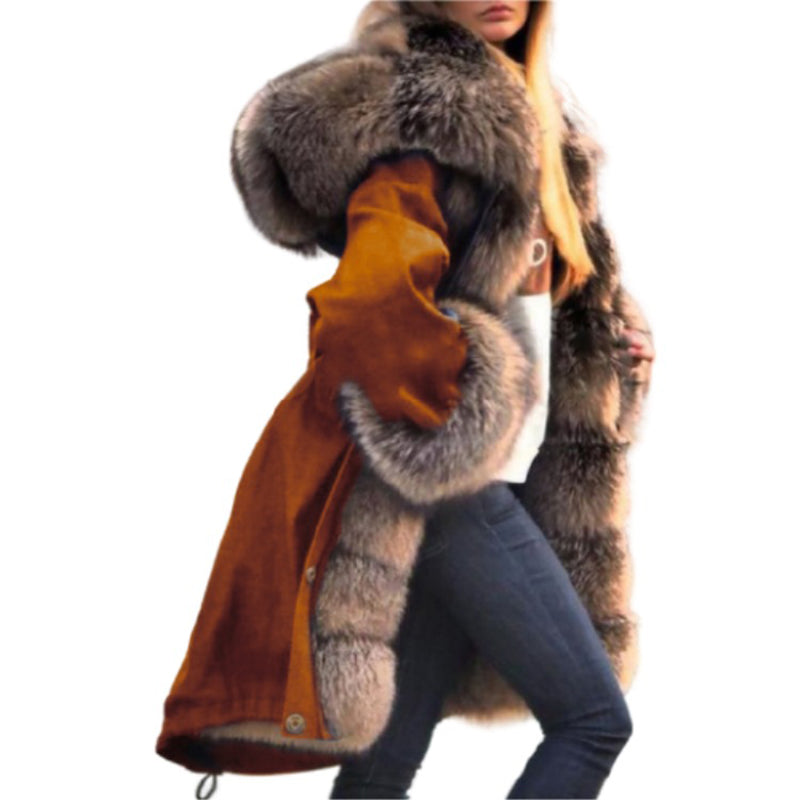【Vlastnosti designu】Designová kapuce na zip se 2 skrytými kapsami, které udrží vaše věci v bezpečí nebo v teple v chladném počasí, a přední zapínání na zip. Dámský kožich je krásně navržený, lesklý a odolný s elegantním šarmem.