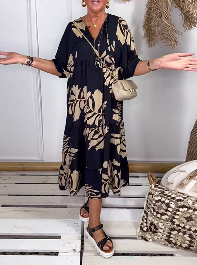 Střet bílých puntíků na těchto lučních minišatech vyzařuje abstraktní boho-chic styl, zvýrazňující jas a jedinečné vzory. Poloviční rukávy, výstřih do V a vrstvená silueta dodávají těmto neformálním šatům uvolněný, ležérní pocit