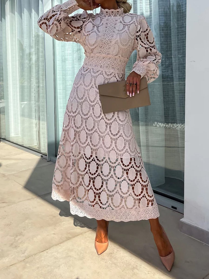 ✓ Krajka Elegance: Šaty jsou vyrobeny z vysoce kvalitní krajky, která dodává nádech elegance a sofistikovanosti. Krajkové detaily na manžetách, pasu a límci zdůrazňují řemeslné zpracování a smysl pro detail.