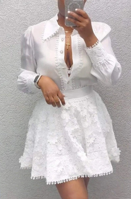 Dámská elegantní souprava košile s dlouhým rukávem a krajkové sukně