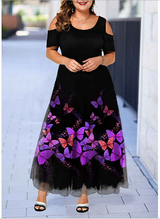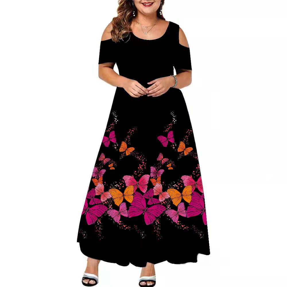 Dámské elegantní ležérně dlouhé šaty s kulatým výstřihem v nadměrné velikosti