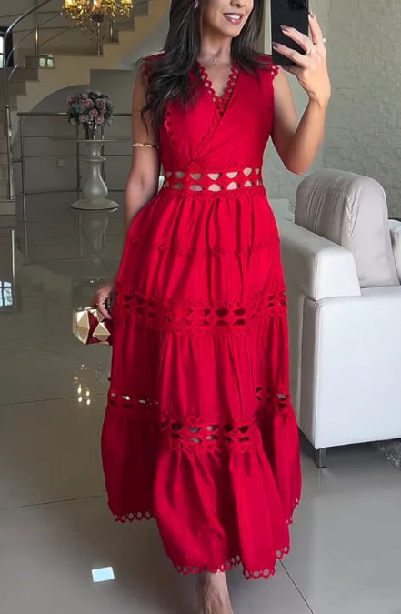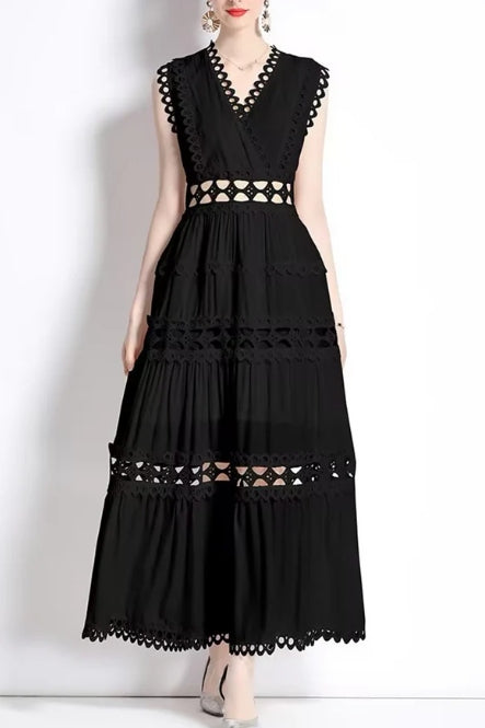 Dámské elegantní patchworkové šaty s dutou krajkou
