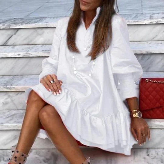 Dámské jednobarevné košilové šaty s dlouhým rukávem