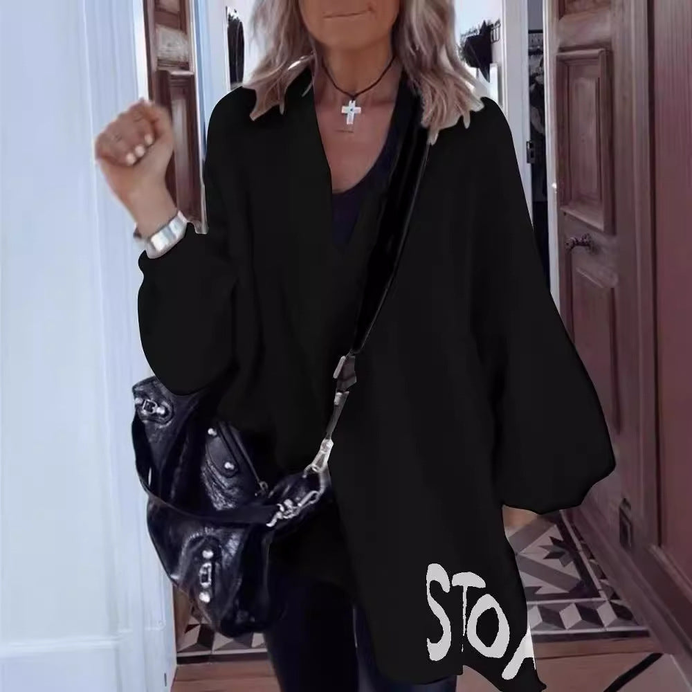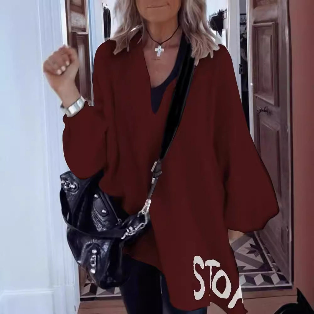 Ženski top od pamuka i lana s V-izrezom