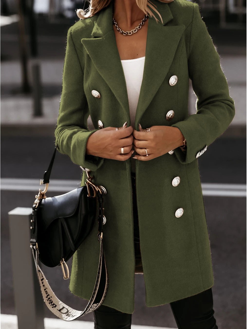 Nový trend! Tato pohodlná, objemná a stylová bunda má klasický jednobarevný design a plyšovou tkaninu s dvojitou řadou světlých knoflíků, které upoutají pozornost a zároveň vás okamžitě zahřejí v nadcházejících chladnějších dnech.