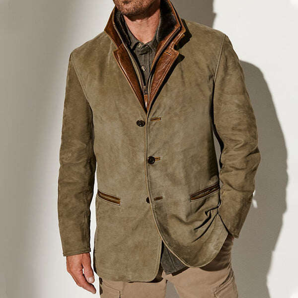 Carlsbad pánská vintage kožená bunda z lýtka s límcem z ovčí kůže Merino