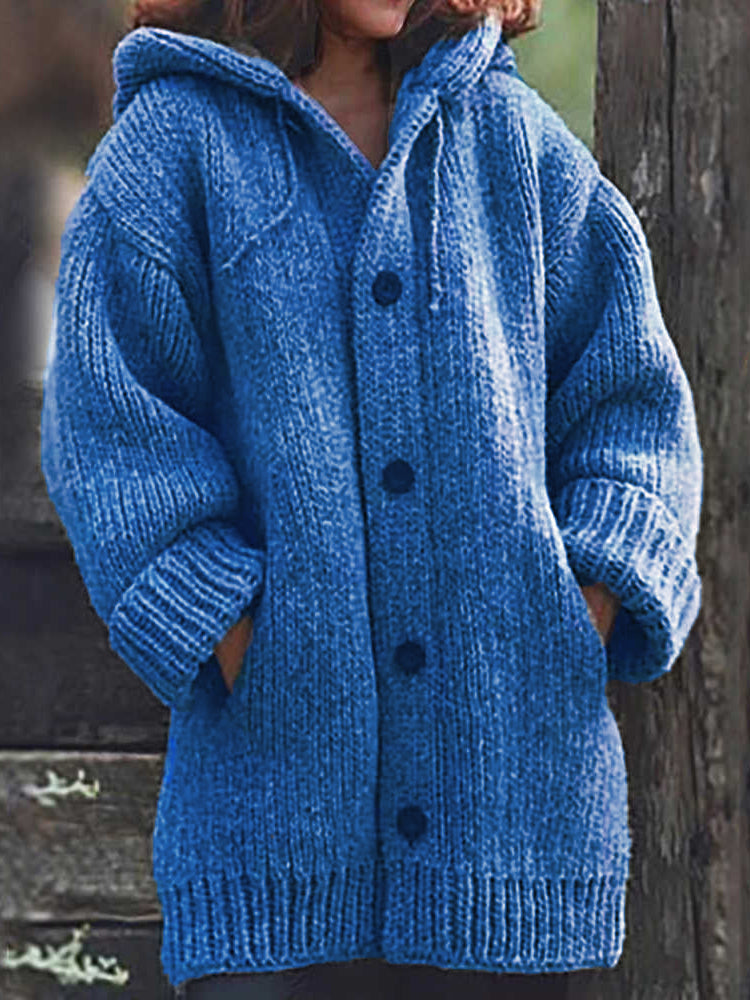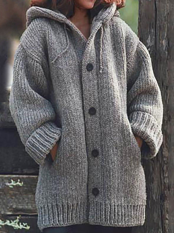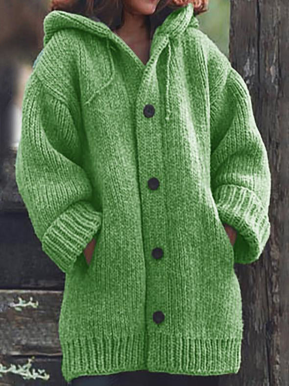 NOVINKA | PLETENÁ VESTA S KNOFLÍKY S KAPUCÍ