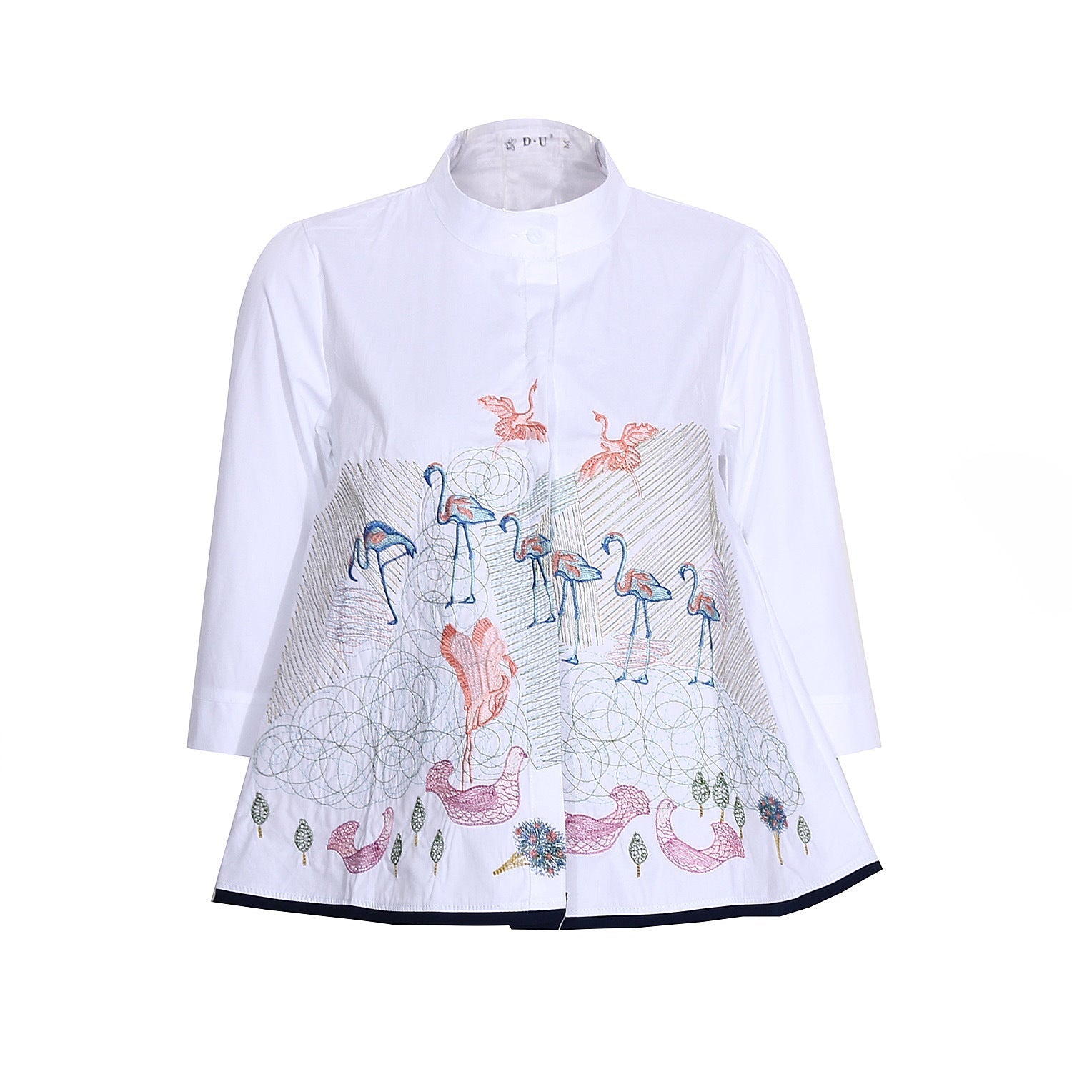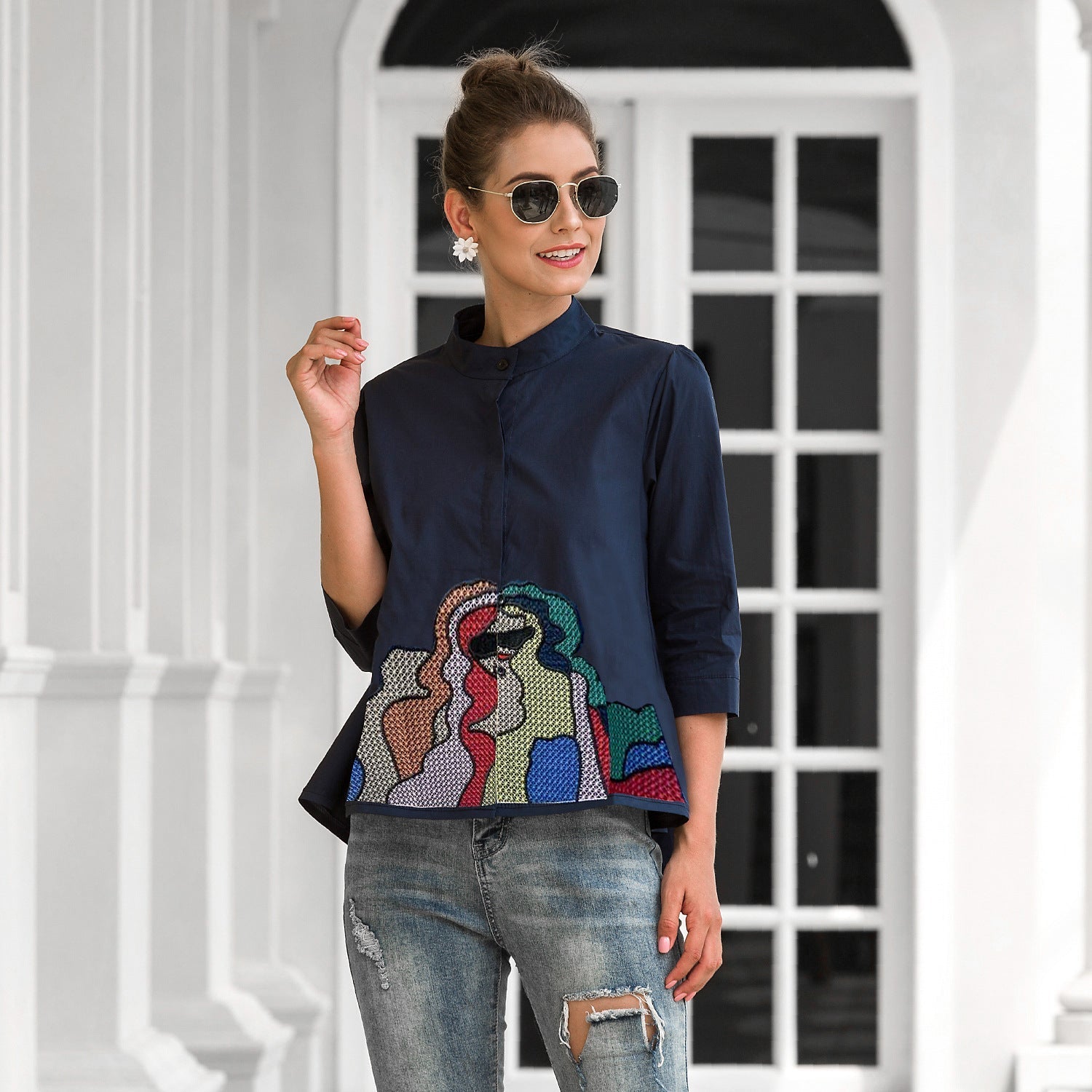 Podzimní vyšívané košile s potiskem, vysoce kvalitní dámské oblečení, dámské ležérní tříčtvrteční rukávy, dámská móda.