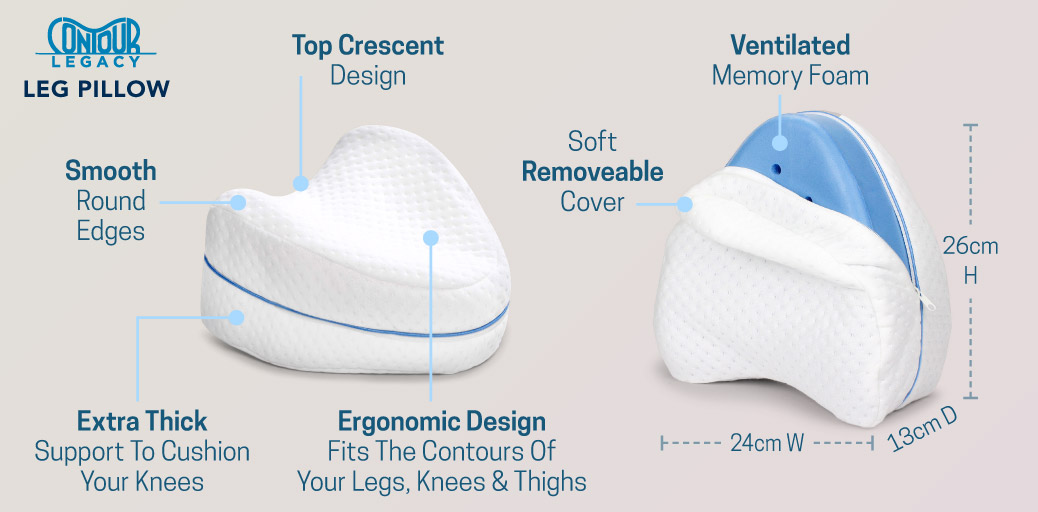 Polštář na nohy Contour Legacy je ergonomicky navržený zkosený polštář na nohy, který se přirozeně přizpůsobí konturám vašich nohou, kolen a stehen, aby pomohl vyrovnat vaši páteř a zmírnil nepohodlí v posteli. Polštář na nohy Contour Legacy, vyrobený ze super měkké paměťové pěny, tlumí vaše kolena a podepírá vaše nohy, čímž pomáhá snížit namáhání kloubů, odstraňuje nepohodlí kostí a kostí a pomáhá stabilizovat vaše tělo, aby se zabránilo kroucení dolní části zad. A je větraný, takže zůstává chladný a suchý. Polštář na nohy Contour Legacy je zcela přirozené řešení pro pohodlný noční spánek.