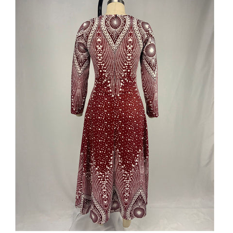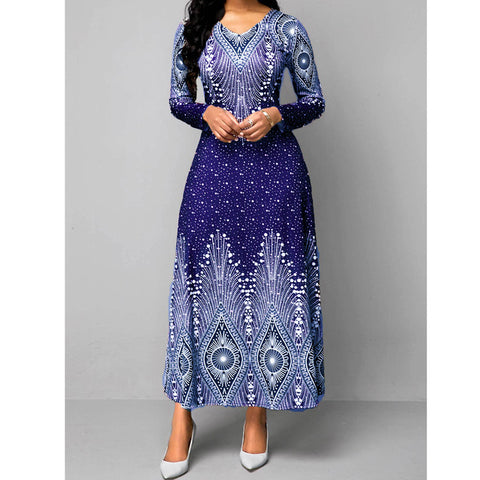 【S-5XL】Evropské a americké retro šaty s dlouhým rukávem a výstřihem do V