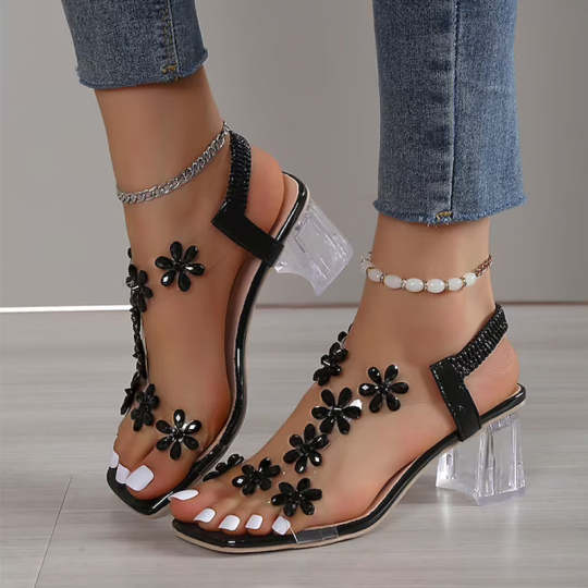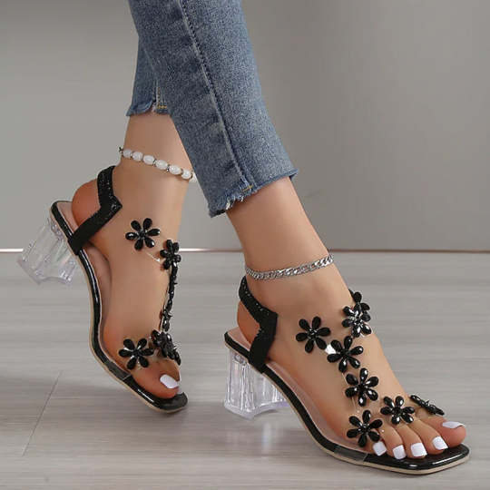 Sandály s blokovým podpatkem z kamenů 2023