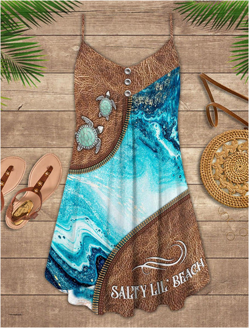 Šaty na zip s potiskem mořské želvy se špagetovými popruhy