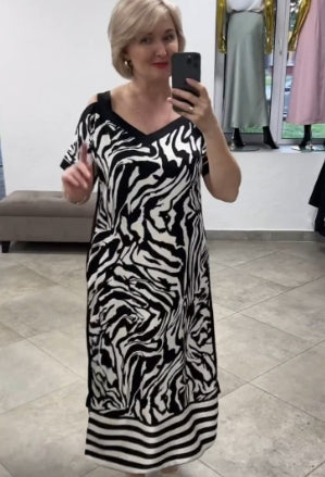 Šaty s krátkým rukávem s potiskem mimo rameno 2024