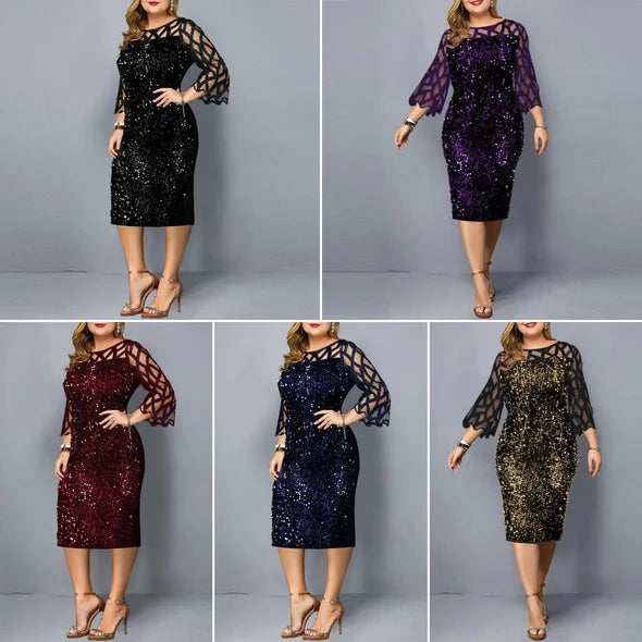 Večerní šaty s krajkovými flitry plus velikosti