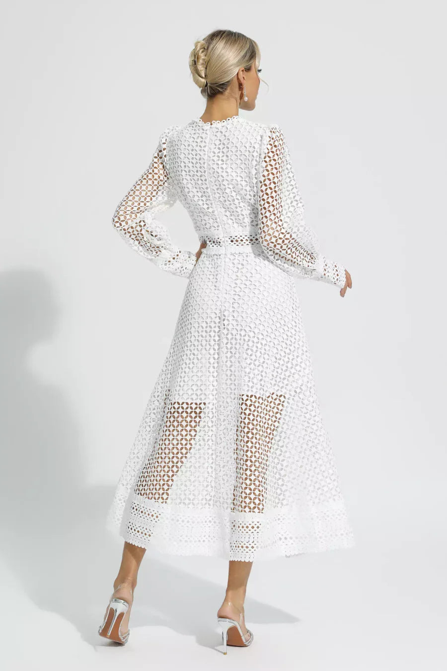 Není pochyb o tom, že v těchto bílých maxi šatech Monroe s dlouhým rukávem dostanete spoustu komplimentů. Tyto elegantní šaty mají dlouhé vykrojené rukávy, vypasovaný pas a sukni do A pro stylový vzhled. Ideální pro každou příležitost. Stačí jej spárovat s podpatky nebo plochými sandály a dokončit vzhled. Neváhejte.