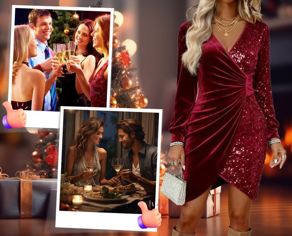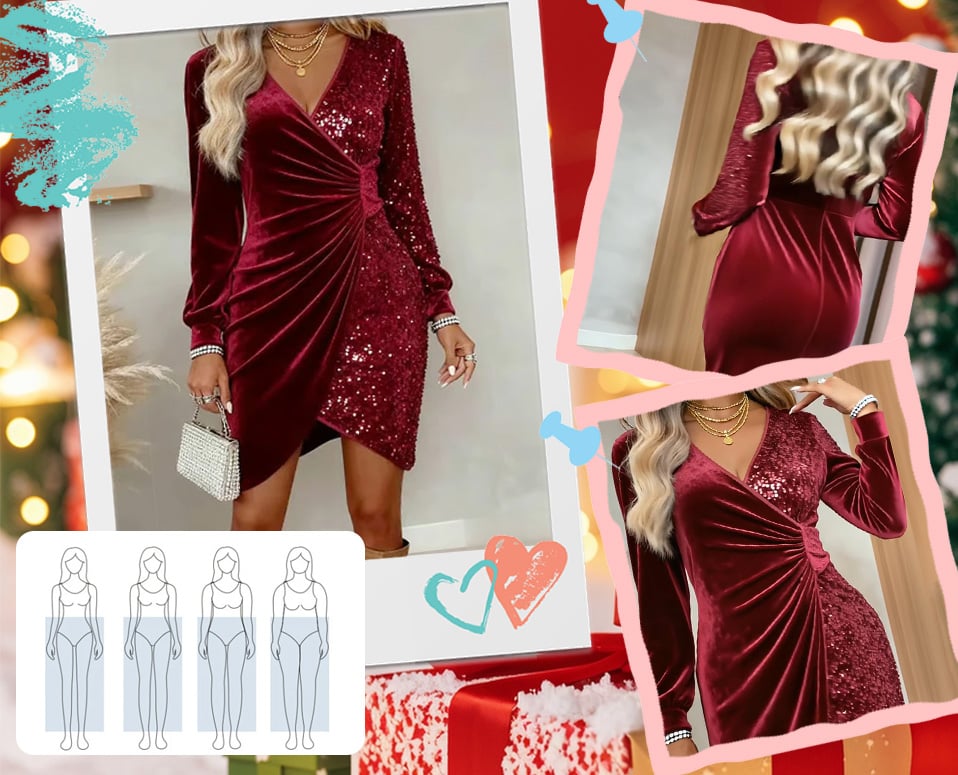 Zapomeňte na starosti s šaty, které jsou „příliš těsné“ nebo „příliš rovné“: tyto sametové šaty s flitry a výstřihem do V vás rozzáří celé Vánoce a na všech svátečních večírcích.