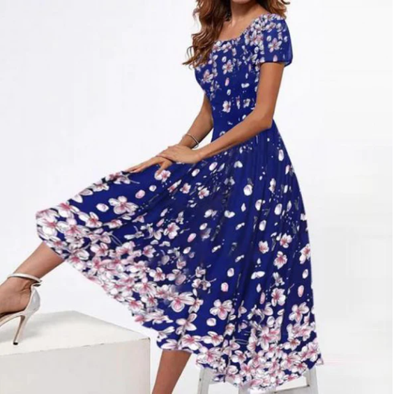 Vícebarevné potištěné šaty s krátkými rukávy a čtvercovým výstřihem