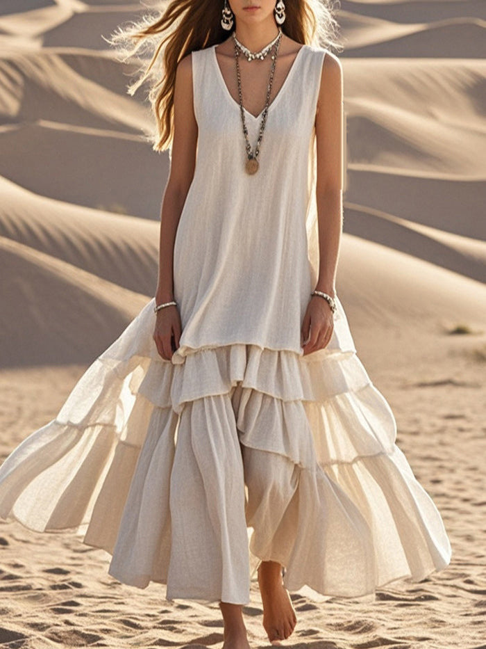 Vintage maxi sukně z bavlny a lnu s výstřihem do V
