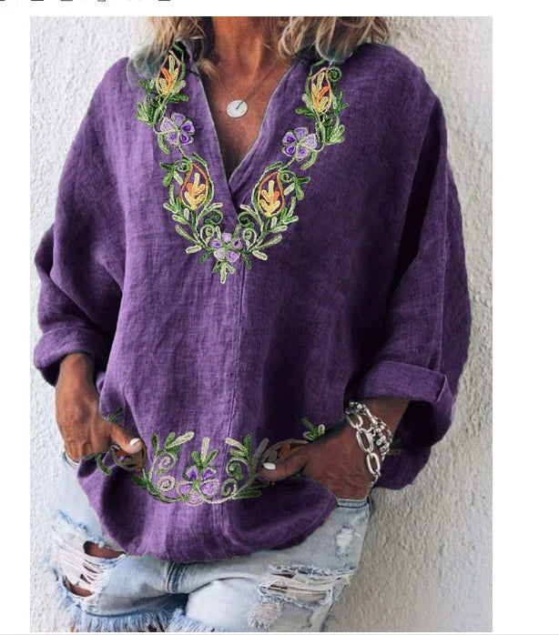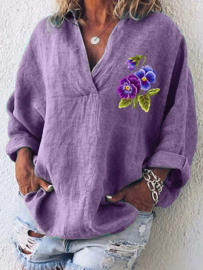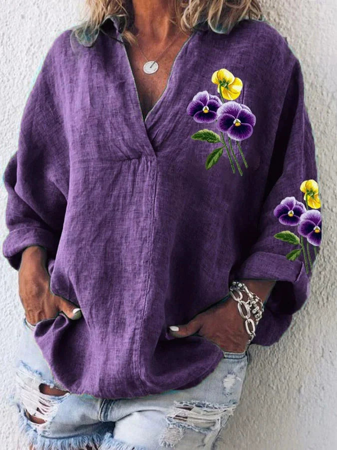 Dámská neformální košile s výstřihem do V a květinovým motivem